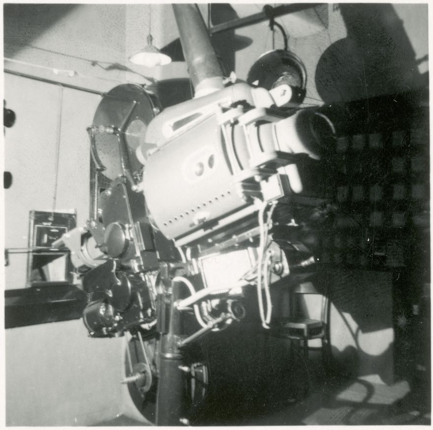 The Regent Theatre in Palmerston North was constructed as a movie theatre in 1930. This image shows the projector at the Regent with C'scope.
