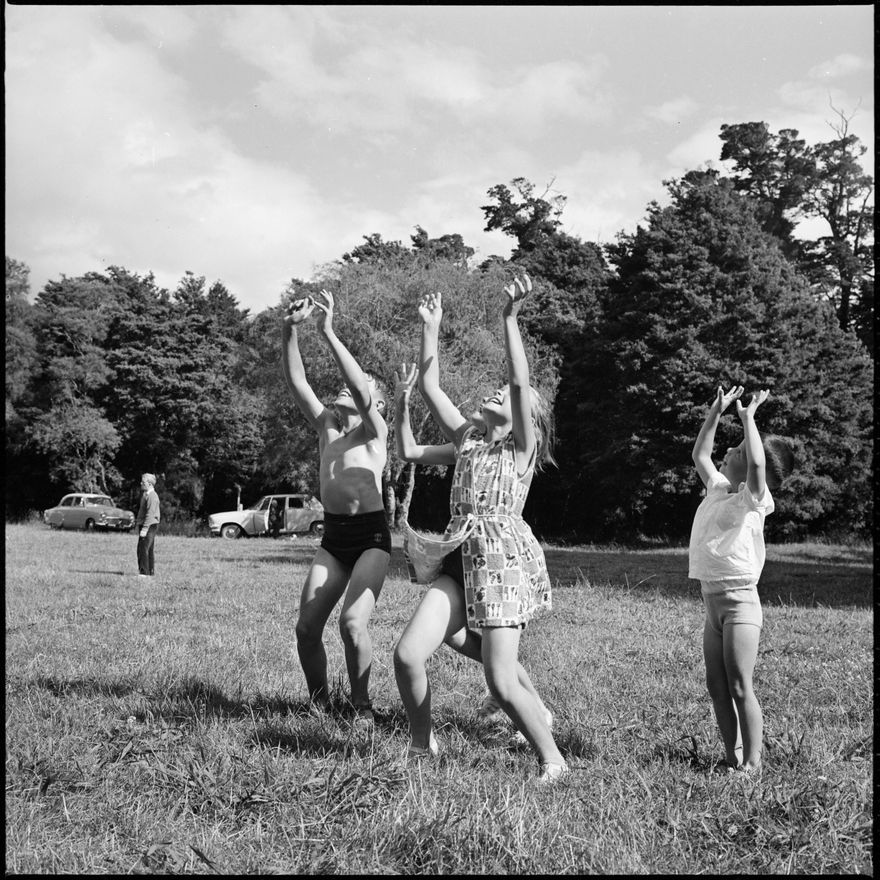 This image was taken (but not used) for a story that ran in The Manawatu Evening Standard on 28th December 1965 "Three children of Mr. and Mrs. D.R. Gordon, of Palmerston North, enjoy a ball game at the Pohangina Valley Domain, on Boxing Day."