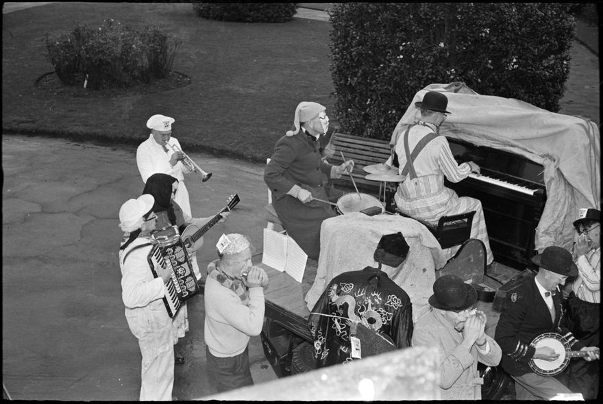 Caption: “The Savage Club novelty band performs an item at the Clocktower.”
