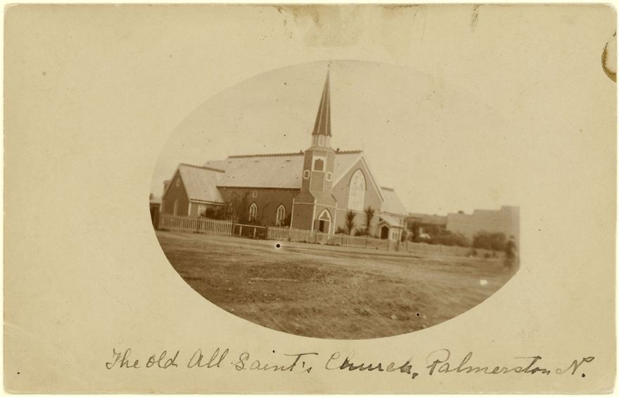 The church was built in 1882 and dedicated by Bishop Hadfield 16 February 1882. The photograph shows the church after the enlargements of 1891. The first Anglican church on the site was built in 1875, and when it proved too small it was incorporated into the building of this second, larger Church. This building was replaced by the current All Saints Church in 1914, with this building being moved back on the section and serving as the Church Hall until 2007 when it was burnt down.