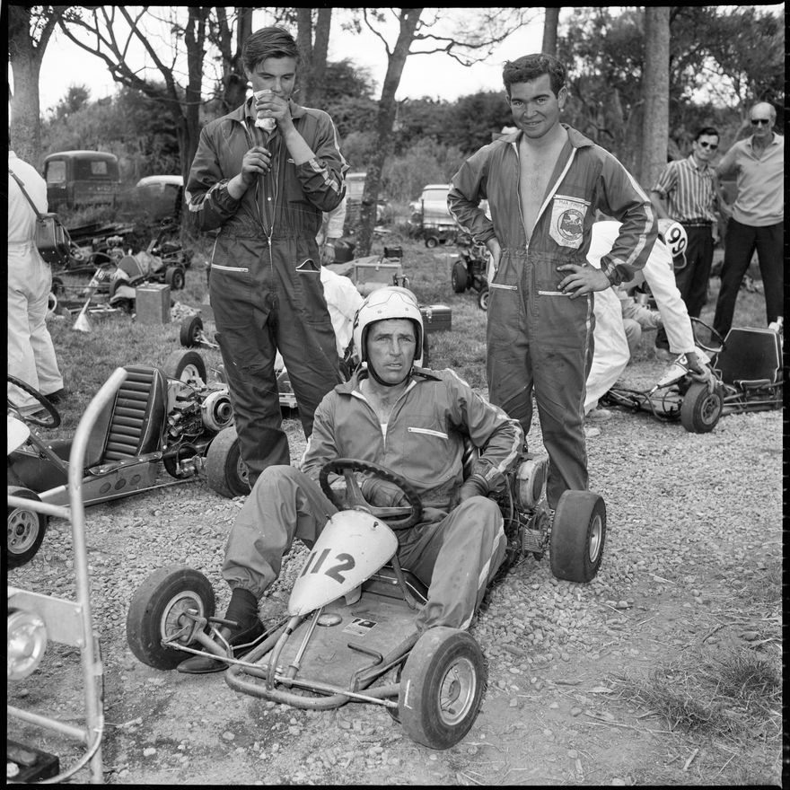 This image was taken (but not used) for a story that ran in The Manawatu Evening Standard on 26th January 1966 [Participants in the Australia-Manawatu go-kart meeting.]