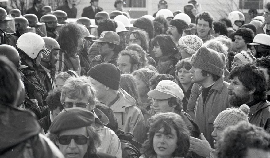 This image was taken (but not used) for a story that ran in The Manawatu Evening Standard on 01 August 1981, depicting the march in protest of the rugby match played between the South African Springboks and the Manawatū provincial team. The march was a coalition of organised responses from representatives and marshals of COST (Citizens Opposed to the Springbok Tour), MAST (Manawatū Against the Springbok Tour) and HART (Halt All Racist Tours) and attracted participants from within the city but also from Wellington and Auckland.