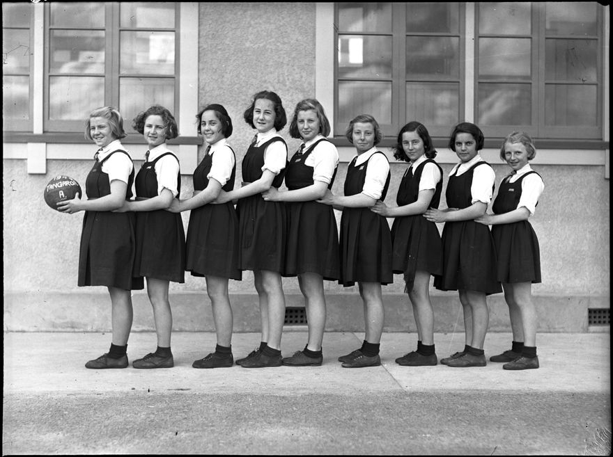 Tangaroa "A" Basketball team. Basketball is now called netball. Palmerston North Intermediate Normal was opened in 1941 in Ferguson Street.