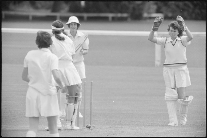 This image was taken (but not published) by the Evening Standard between the 27th and 29th of December 1980. It depicts a moment of action from the Hallyburton Johnstone Shield 2-day match between the Central Districts and North Shore women’s cricket teams. The match was drawn.