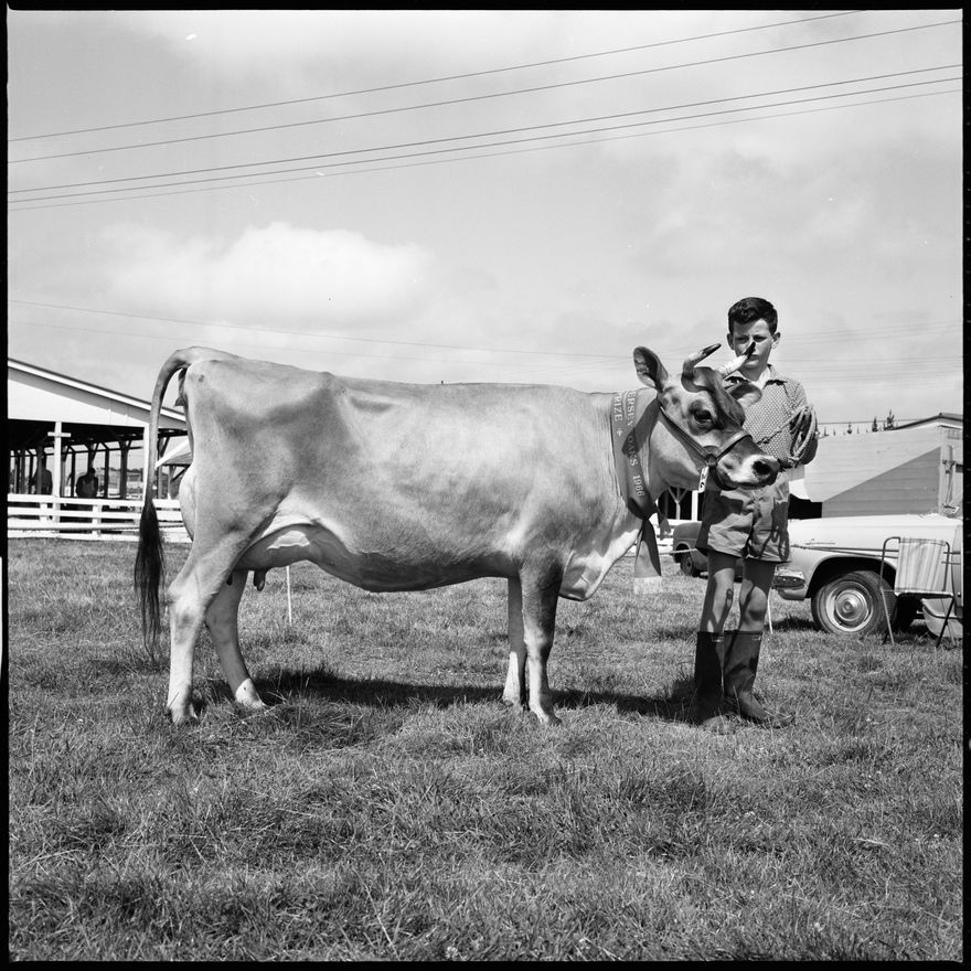 This image was taken for a story that ran in The Manawatu Evening Standard on 29th January 1966 "The Jersey Oakes winner at the Levin Show, Gymdale Maise, exhibited by Mr. J.G. Horn, junr., of Levin."