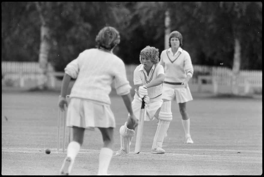 This image was taken (but not used) by the Evening Standard on 19th of January 1982. It depicts Manawatū Women’s cricket team taking on the International Australian Women’s team in a limited over warm-up match for the Hansell's Vita Fresh Women's World Cup 1981/1982. The match was held at Ongley Park in Palmerston North. The Australian team won by 202 runs. The match report ‘Aussies too polished in all facets’ was written by Ford Watson and published the next day: