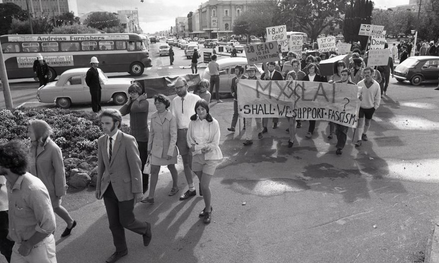 “Sir, - When visiting your city last Friday, I viewed with disgust the parade through town. My father is a First World War veteran, my husband spent six years overseas in the last war, including three and a half in a prisoner of war camp, but nobody paraded through town with placards saying they should be sent home. The men who are overseas at present are all volunteers, nobody has forced them to go. I have a friend who, on his return from Vietnam to New Zealand, immediately re-enlisted. There have been many such exhibitions as Friday’s, but I have yet to see one featuring a Vietnam veteran. What exactly do those grubby, untidy looking people who paraded on Friday expect to achieve? From what I saw of them I should say a spell in the army would not hurt some of them. If those are the people we are to entrust our children to, heaven help the next generation. What a pity they cannot channel their enthusiasm into more worthwhile activities which may bring better results for them, as I am sure the only thing they did last Friday was to make exhibitions of themselves. – DISGUSTED VISITOR, Mangaweka.”
