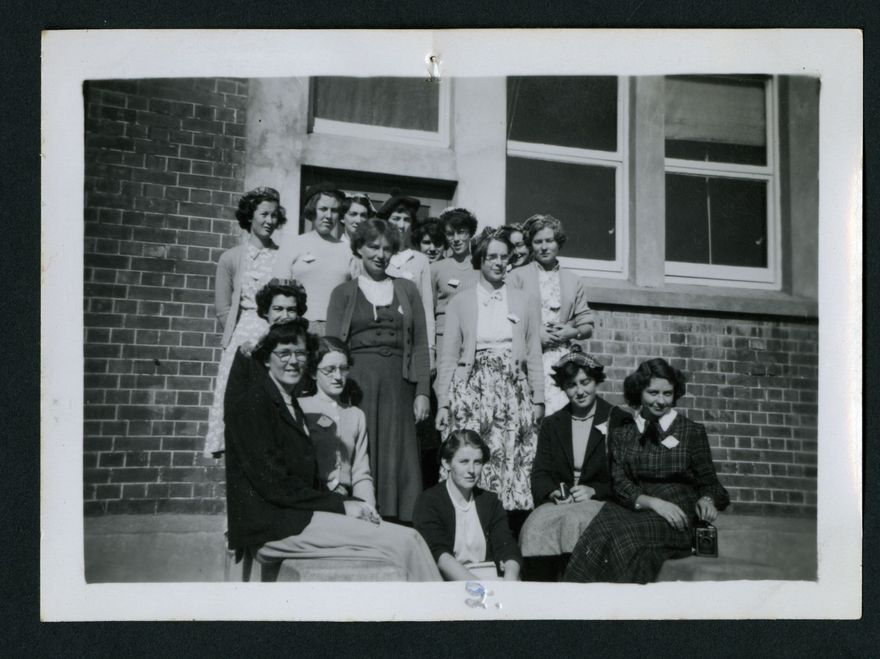 Members of the St. Andrew’s Presbyterian Bible Class of Palmerston North, attending the Girls’ Easter Camp in Marton. Front Row: Beverley Newton; Judith Dunlop; Isabel Pilkinton; Coral Lewis; Shirley Salter. 2nd Row; Beth Thompson; Coral Ford; Jocelyn Mead. At back: Katt Bott; Unknown; Margaret Hubbard; Mary Hubbard; Elayne Thompson; Joy McDowell; Margery Dempsey(?); Unknown