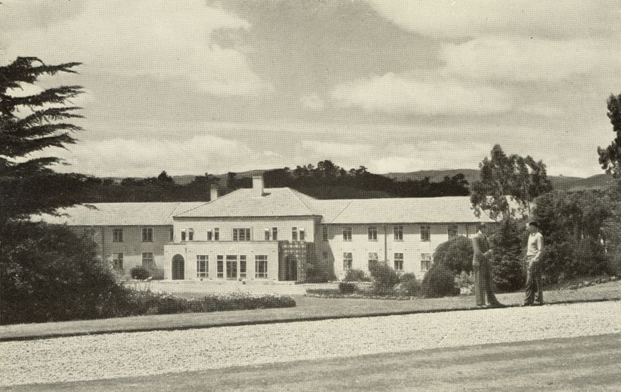 McHardy Hall, the mens hostel in use around 1945, part of Massey Agricultural College, Palmerston North.