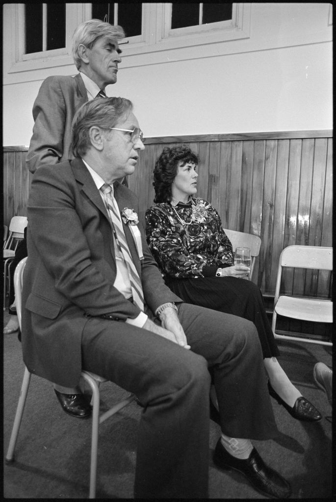 This image was taken by the Evening Standard on Saturday 15th of August 1987 but was not published. It depicts New Zealand Democratic Party leader Bruce Beetham and supporters on election night in 1987.