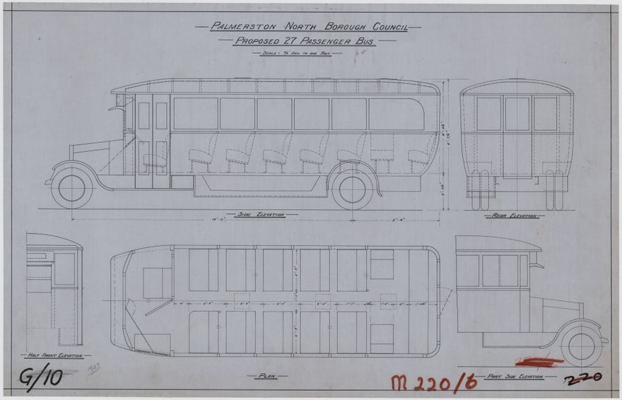 A plan for a 27 seater bus for the Palmerston North Borough Council. The Palmerston North Municipal motor service began in 1921.