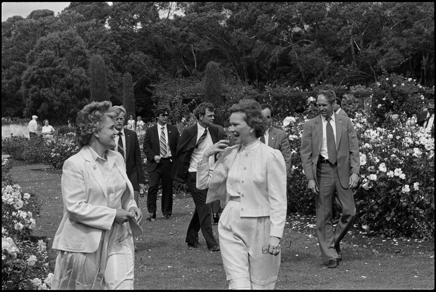 This image was taken by the Evening Standard on the 11th of February 1984 but was not published. It depicts former United States president Jimmy Carter and his wife Rosalynn on a tour of the Dugald McKenzie Rose Garden at Victoria Esplanade Victoria Esplanade.