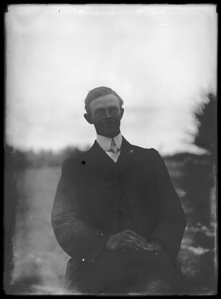 This photograph was created by William James Young in the early 20th century. A large variety of subjects are depicted in the collection, but family, rural life and travel are the most prominent themes. The exact location of the photographs in the Young Collection is unknown, but W J Young lived on a farm in Mt Stewart, Rangitikei, and some of the photographs include his house. The Young family were apparently avid travellers and photographs later in the collection feature scenes from Rotorua, Auckland, Whanganui, as well as other unidentified locations. The portraits are all unidentified, but are presumably of members of the Young family. The photographers parents were George Henry (b 1833) and Jane McDowell (b 1842, d 1916). They came to New Zealand in 1877. The same year, they bought the home farm on Mt Stewart and called it Kilrudden after Kilrudden House, the home of the McDowell family in Ireland. The couple had four children: Ann (b 1873), Margaret (b 1876), John (b 1878) and William James (b 1880). William James married Mary Elizabeth Thompson and they had four children: Doris (b 1914, d 1989), George (b 1916, d 1991), Royden McDowell (b 1925, d 1992) and Noel William (b 1927, d 2013).