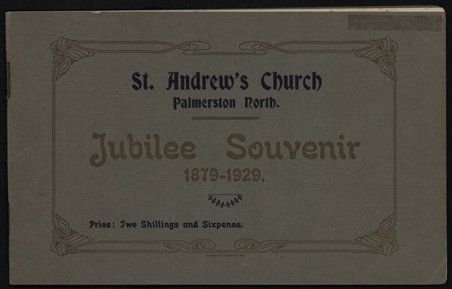 St Andrew's Presbyterian Church, Palmerston North 1879-1902 Jubilee Souvenir, Containing a Sketch of the History of St Andrew's Church for the past Fifty Years, with Photographs and Illustrations.