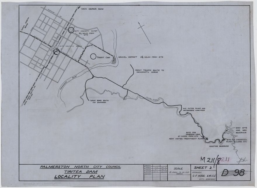 Plan drawn to show the site of the new reservoir and water treatment plant, that supplies water for Palmerston North.