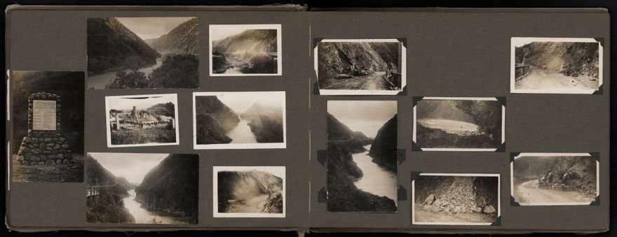 Dated from the 1920s and 1930s, this photograph album depicts events on the Manawatū Gorge road including construction and repairs of the road, removing slips, car accidents etc. The album also contains images of Napier following the earthquake of 1931. The photographs were shot by William (Bill) Brockie. Individuals are unidentified.