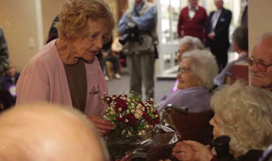 Madge Allsop visits Brightwater Home