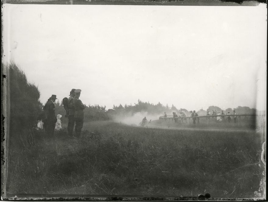 The Awapuni Racecourse was used as an army camp during the First World War. Note the men in military uniform among the group on the left.