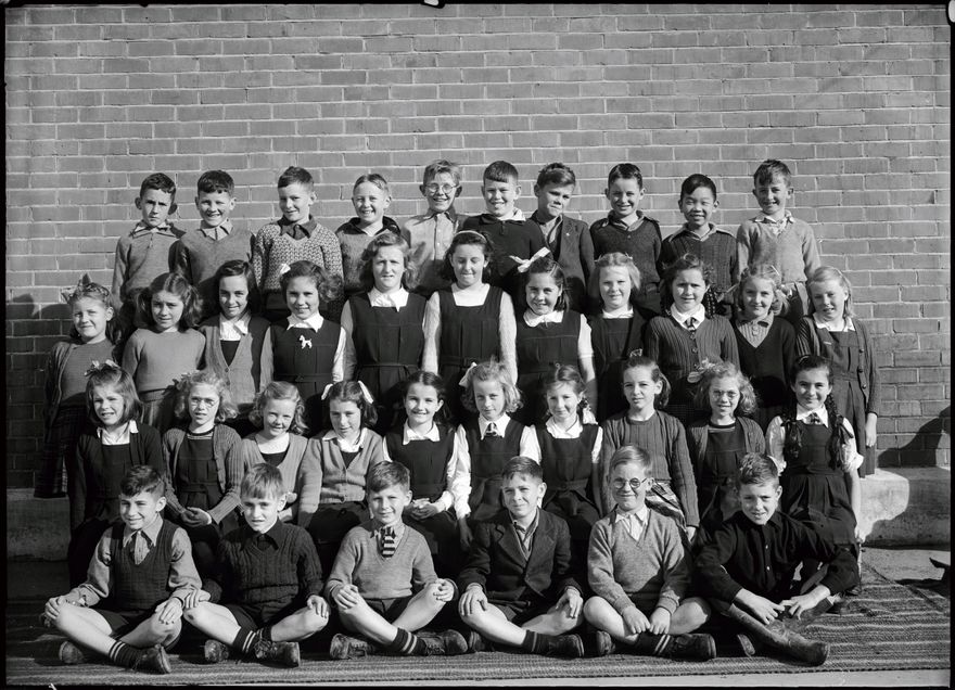 A unidentified group of young pupils attending Central School. Central Normal began as Palmerston North's first school in 1872, in Princess Street. It shifted to become Campbell Street School in 1890. When it was outgrown a new school was opened in Featherston Street in 1921 and became known as Central Normal School.