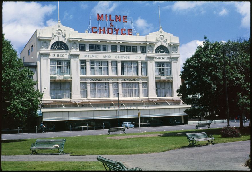 Milne and Choyce operated in Palmerston North from 1959 - 1966. They bought the store, built 1927-1928, from the C M Ross Company (locally owned) in 1959 and sold to the D.I.C. in 1966.