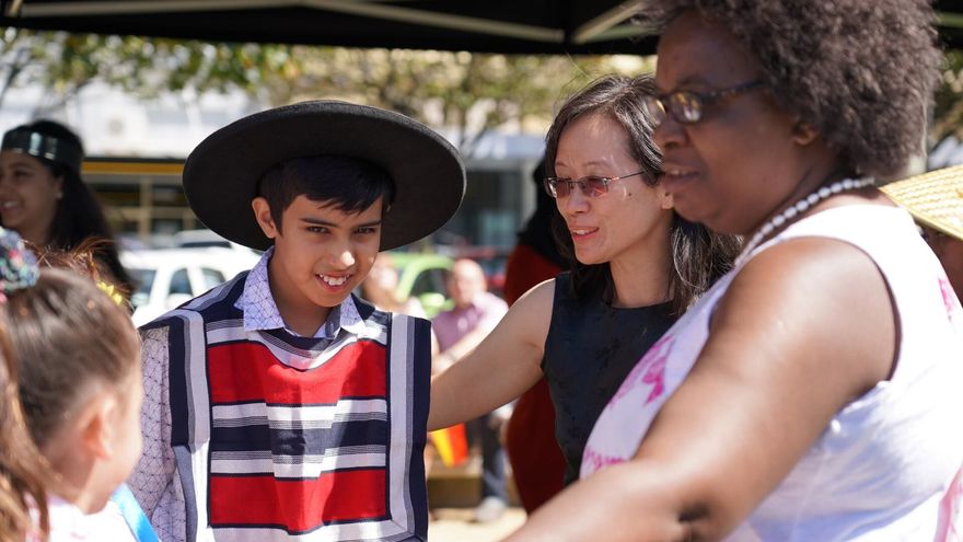 A model in traditional Chilean clothes at the Festival of Cultures Fashion Show, 2018.