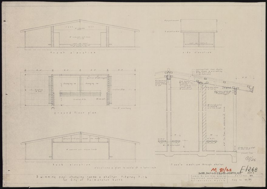 The Palmerston North City Council purchased the site of the old railway ballast pit in 1938 and developed it into a recreational and sporting area. A memorial to citizens killed in World War Two (WWII) was erected and in 1954 Fitzroy Park was officially dedicated as Memorial Park. These plans are not all of the same date but informed the development of the time. The plans cover the general layout, war memorial, running and cycle track, skating rink, clubrooms, dressing shed, toilets, seating, stormwater and cross sections. They also include the proposed plan of the skating rink at Himitangi, and plans for the Cooks Gardens and Western Springs stadium tracks.
