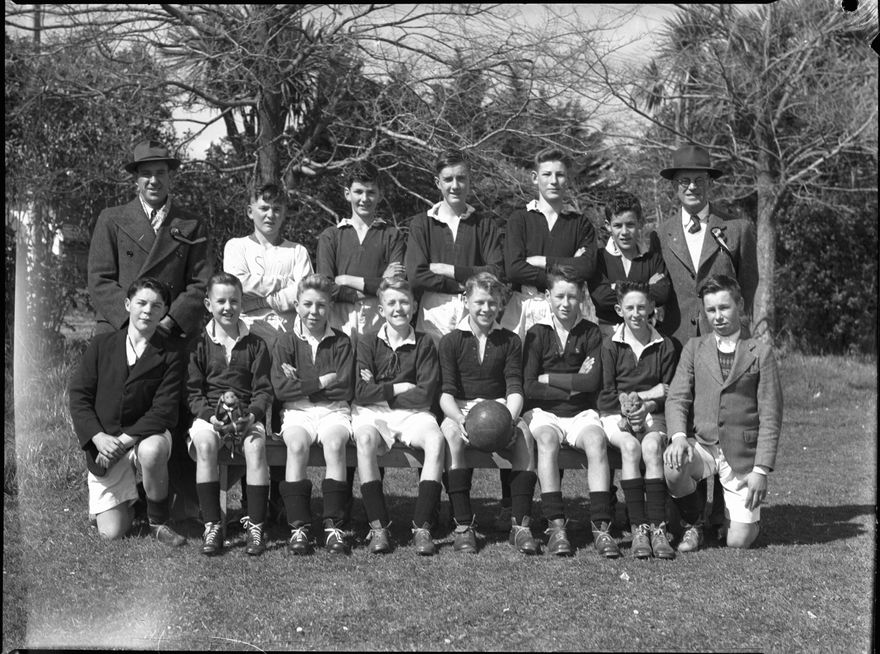 A group of unidntified football players with coaches or football officials. Also see 2011N_ELMAR-3_005430