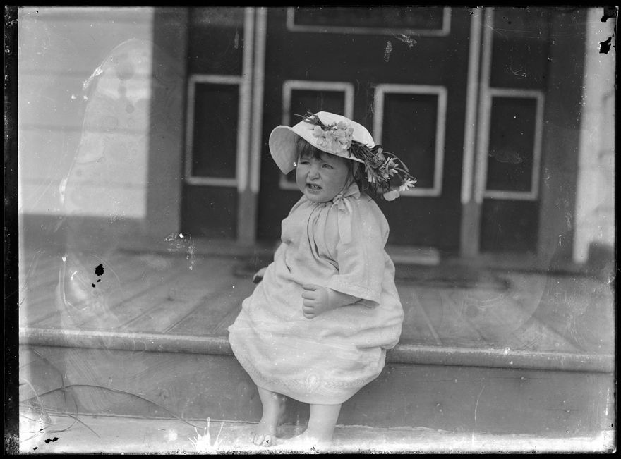 This photograph was created by William James Young in the early 20th century. A large variety of subjects are depicted in the collection, but family, rural life and travel are the most prominent themes. The exact location of the photographs in the Young Collection is unknown, but W J Young lived on a farm in Mt Stewart, Rangitikei, and some of the photographs include his house. The Young family were apparently avid travellers and photographs later in the collection feature scenes from Rotorua, Auckland, Whanganui, as well as other unidentified locations. The portraits are all unidentified, but are presumably of members of the Young family. The photographers parents were George Henry (b 1833) and Jane McDowell (b 1842, d 1916). They came to New Zealand in 1877. The same year, they bought the home farm on Mt Stewart and called it Kilrudden after Kilrudden House, the home of the McDowell family in Ireland. The couple had four children: Ann (b 1873), Margaret (b 1876), John (b 1878) and William James (b 1880). William James married Mary Elizabeth Thompson and they had four children: Doris (b 1914, d 1989), George (b 1916, d 1991), Royden McDowell (b 1925, d 1992) and Noel William (b 1927, d 2013).