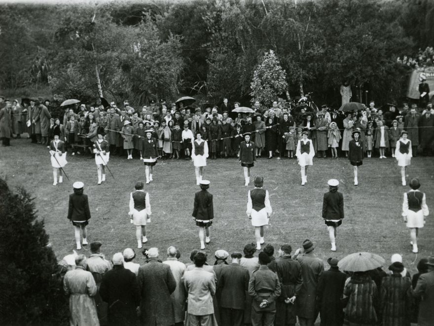 The obelisk at Fitzroy Park, as it was then called, was unveiled in this ceremony by Major-General Sir Howard Kippenberger. Marching girls performed as part of the occasion. Later, in 1954, the park was dedicated and renamed Memorial Park. The obelisk, in a state of disrepair, was removed in 1983, and now only the gates into the park remain as the memorial.