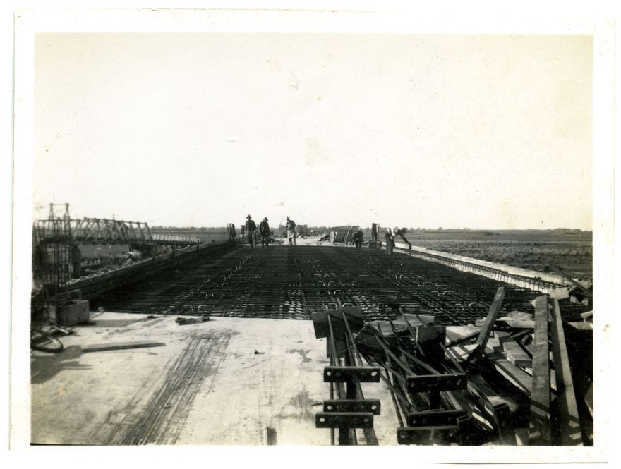 One of a group of photographs from Ron Grammer's working life in bridge engineering in the 1940s and 1950s. Whirokino Bridge - steel in the last span of deck.