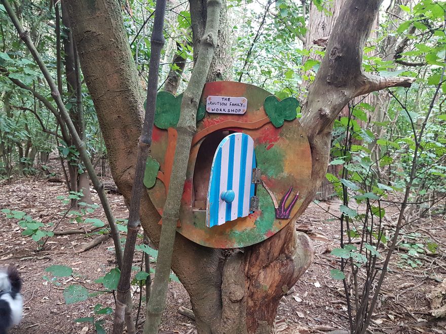 A small art installation at Bills Bush in Ahimate Reserve. The door can be opened and closed.