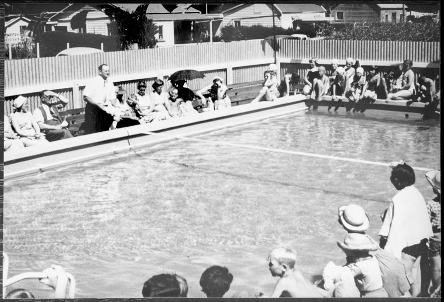 This photograph shows the baths at Ashhurst School, which were offically opened by Mr H W Brown, Chairman of the Wanganui Education Board, in February 1958.