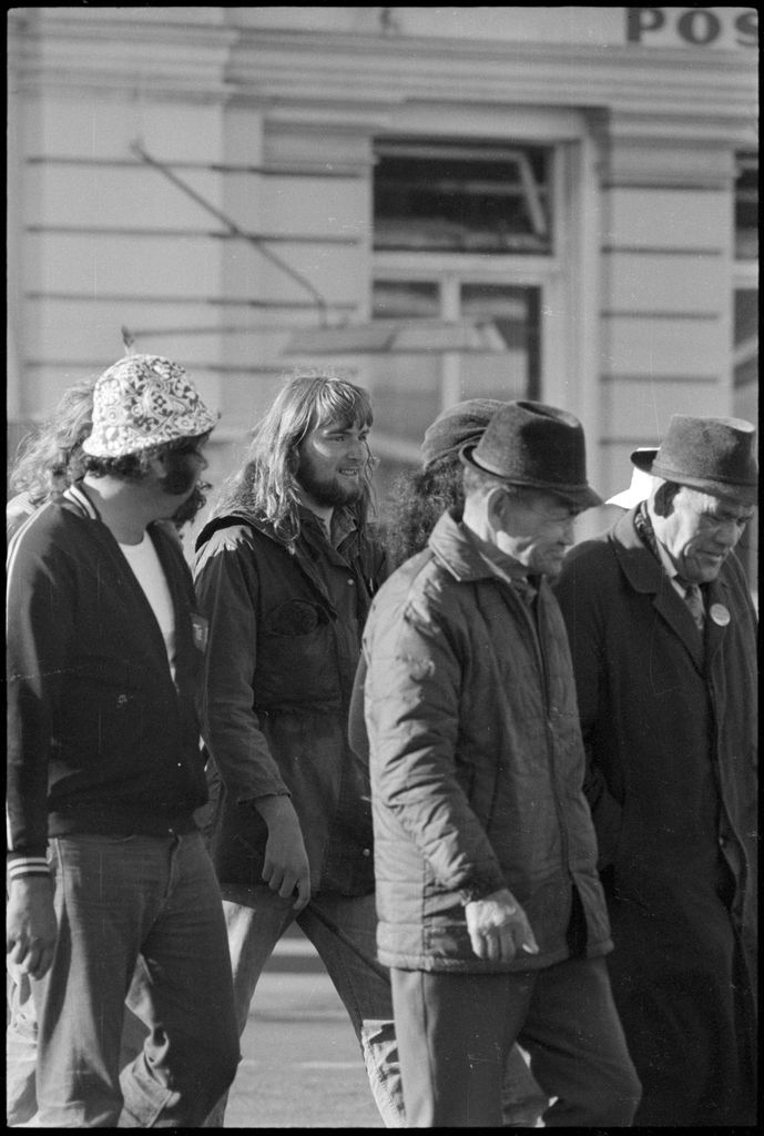 These images were taken (but not published) on the 6th of October 1975. In the centre is march organiser vivian Huchinson. Vivian's memoirs of the march can be viewed on his website: https://www.taranaki.gen.nz/matakite50