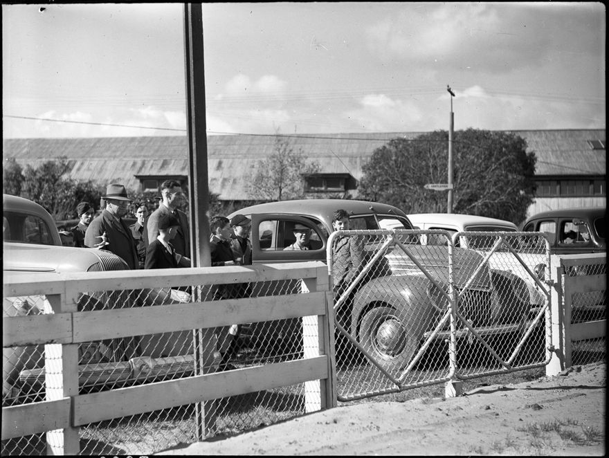 Supporters of the Palmerston North High School Old Boys football team arriving for game, at the Palmerston North Showgrounds. Also see 2011G_ELMAR-2-B3_005155