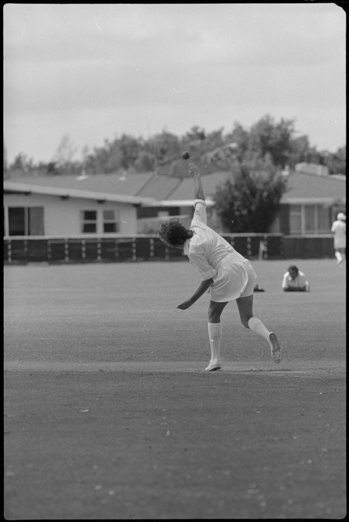 This image was taken (but not published) by the Evening Standard on either the 30th or 31st of December 1980. It depicts a moment of action from the Hallyburton Johnstone Shield 2-day match between the Auckland and Central Districts women’s cricket teams. The match was drawn.