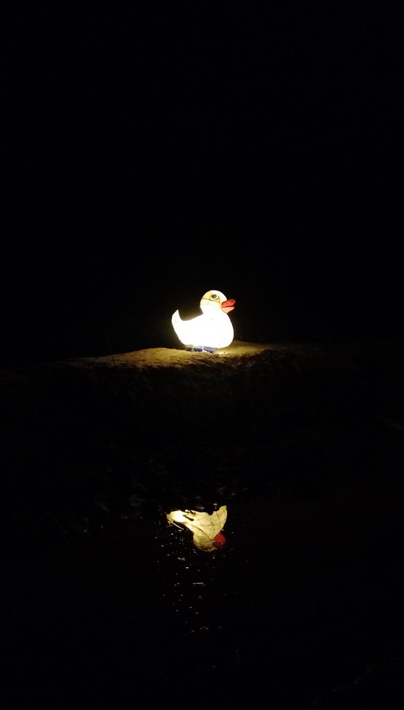 The duck was produced by REACT community group and was installed at the bonfire event by the river.