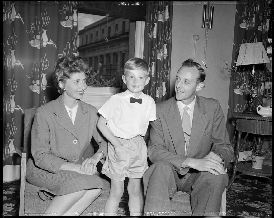 This image was taken for a story that ran in The Manawatu Evening Standard on 02 September 1960 "Recently arrived in New Zealand from England, Mr. and Mrs. J. Shaw and their son Peter will settle in Palmerston North. Mr. Shaw will commence teaching at the Freyberg High School at the beginning of the third term. Mrs. Shaw hopes also to take up a teaching position in the city."