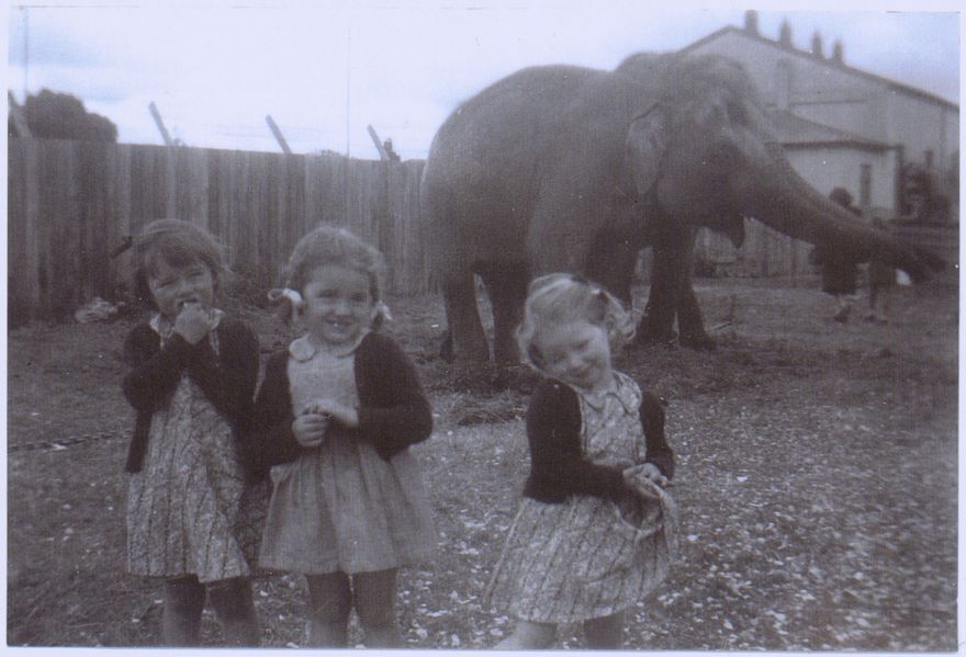 Catherine Collis, centre. The photograph was taken from her grandmother's flat at 487 Main Road, opposite. The circus was held in Devine's Paddock.