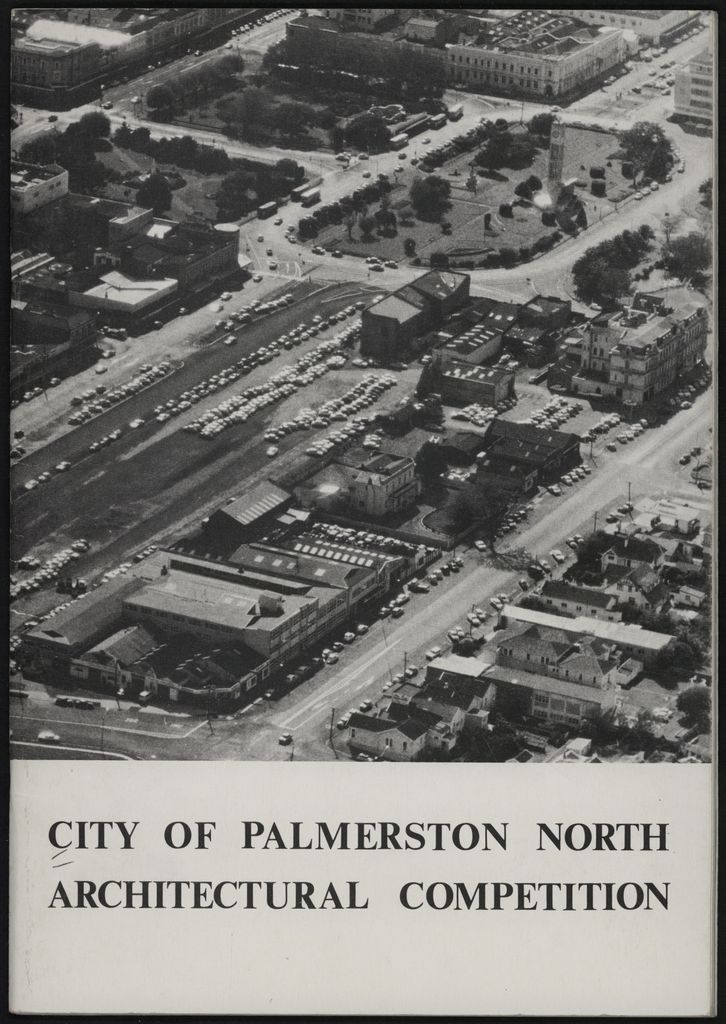 The Palmerston North City Council advertised for ideas regarding the placement and design of civic buildings on the old Railway Land adjacent to The Square. This booklet gave guidance for those who wished to make a submission for the competition. From the foreword: "The Palmerston North City Council has decided to redevelop land in the centre of the City left vacant by the relocation of the railway. A town planning study was carried out for the Council by Kingston Reynolds Thom and Allardice, architects, engineers and planners. This study recommended, among other things, that a group of civic buildings should be located on the former railway land adjacent to the Square. This competition is for the design of the civic buildings which will form the first stage of the redevelopment of the City centre. It is the Council's intentions that the civic buildings should be a focal point for the City and realising the architectural importance of this project it has been decided to invite registered architects to submit their proposals in open competition. The Council believes that the challenge presented by this project will attract the interest of many architects and will thus ensure that a group of buildings of the highest architectural merit will enhance our City. D B Black, Mayor, Palmerston North, May 1970".