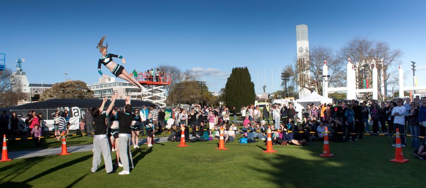 Rugby World Cup fans were able to enjoy a wealth of events in Te Marae o Hine – the Square during the 2011 Rugby World Cup. including a demonstration from Palmerston North based Cheerleading group 'Zero-Gravity'.