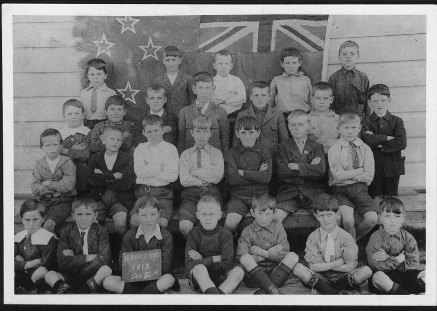 A class photo from Terrace End School, Standard III, 1917. One of these boys is Walter Reginald Hallett and another is likely to be his life-long friend Ray Lawson.