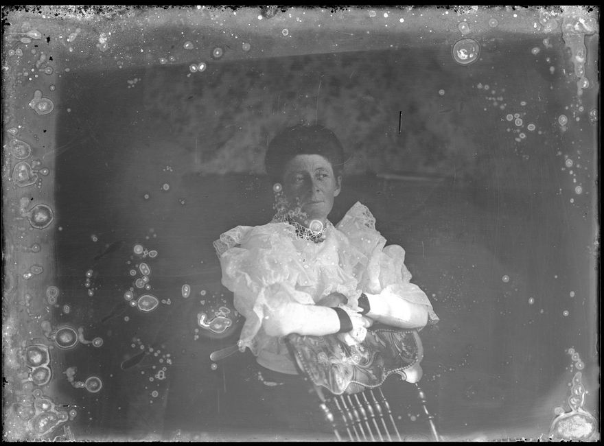 This photograph was created by William James Young in the early 20th century. A large variety of subjects are depicted in the collection, but family, rural life and travel are the most prominent themes. The exact location of the photographs in the Young Collection is unknown, but W J Young lived on a farm in Mt Stewart, Rangitikei, and some of the photographs include his house. The Young family were apparently avid travellers and photographs later in the collection feature scenes from Rotorua, Auckland, Whanganui, as well as other unidentified locations. The portraits are all unidentified, but are presumably of members of the Young family. The photographers parents were George Henry (b 1833) and Jane McDowell (b 1842, d 1916). They came to New Zealand in 1877. The same year, they bought the home farm on Mt Stewart and called it Kilrudden after Kilrudden House, the home of the McDowell family in Ireland. The couple had four children: Ann (b 1873), Margaret (b 1876), John (b 1878) and William James (b 1880). William James married Mary Elizabeth Thompson and they had four children: Doris (b 1914, d 1989), George (b 1916, d 1991), Royden McDowell (b 1925, d 1992) and Noel William (b 1927, d 2013).