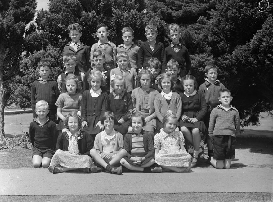 A unidentified group of young pupils attending Central School. Central Normal began as Palmerston North's first school in 1872, in Princess Street. It shifted to become Campbell Street School in 1890. When it was outgrown a new school was opened in Featherston Street in 1921 and became known as Central Normal School.