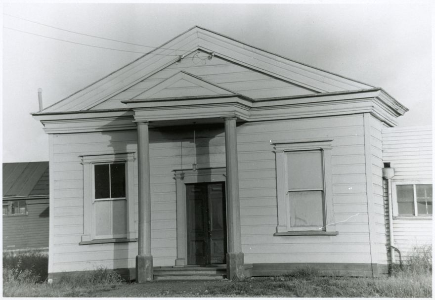 This photograph shows the Railway Hall on Church Street West. This building was constructed in 1880 as the first Masonic Lodge Temple for the United Manawatu Lodge at a cost of £365. It originally stood in Main Street West, near George Street and was removed to its Church Street site in 1892, when the Railway Department purchased the site for the expansion of the railway yards in Main Street. The building served as a Social Hall for railway employees until about 1970, when its dilapidated condition led to its closure. It was the last of the railway buildings in the central city to be demolished, its demolition taking place during July and August, 1972. Note the glimpse of the railway goods shed on the left.