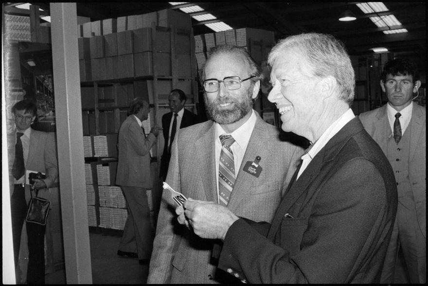 This image was taken by the Evening Standard on the 13th of February 1984 but was not published. It depicts former United States president Jimmy Carter and his wife Rosalynn on a tour of the Allflex Plastics company.