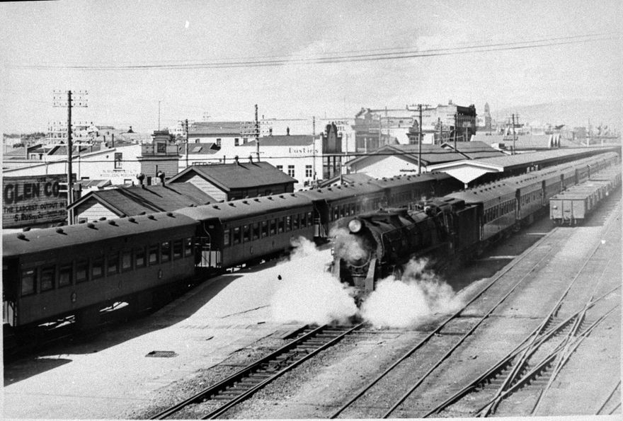 Steam train engine “Ka” class, steaming through the Palmerston North Railway Station in Main Street.