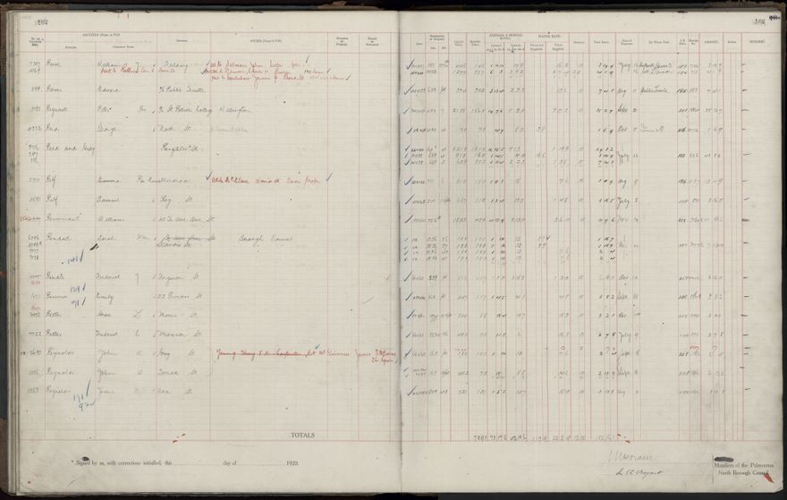 Palmerston North Borough Council rate book, listing rate payers for the years (1 April - 31 March) 1920 - 1921. Gives names, street, owner (if different to rate payer), legal description of property, capital and unimproved values and rates paid.