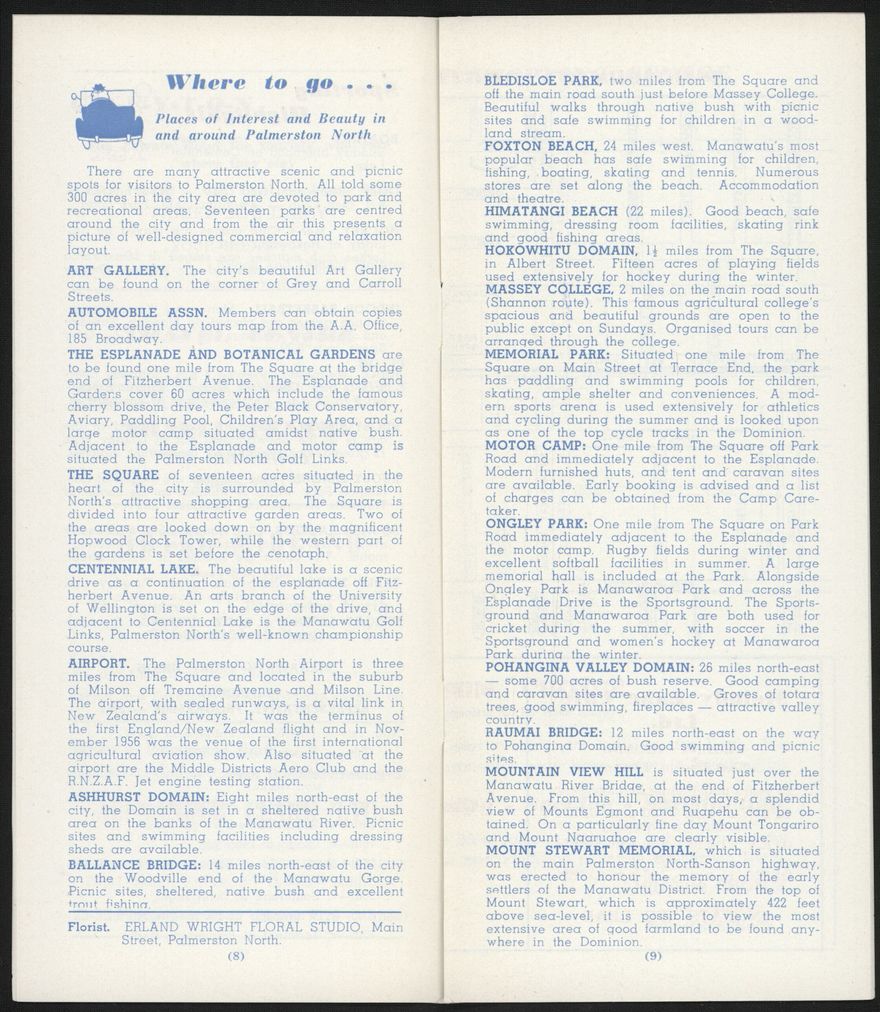Visitors Guide Palmerston North and Feilding: August 1961