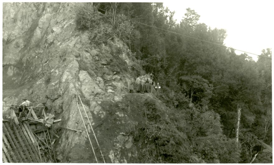 Photograph taken during the construction of the Upper Turitea Dam (1957).