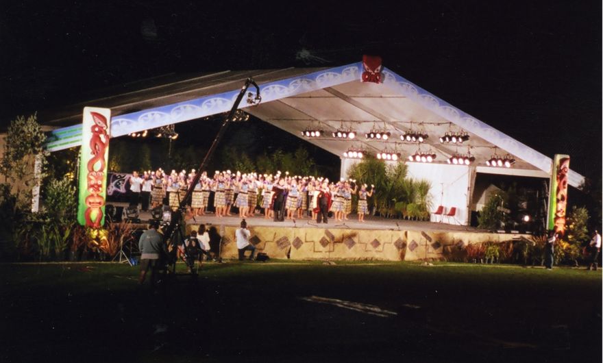 An unidentified group performing at Te Matatini, a Māori performing arts festival, held at Arena Manawatū in 2005.
